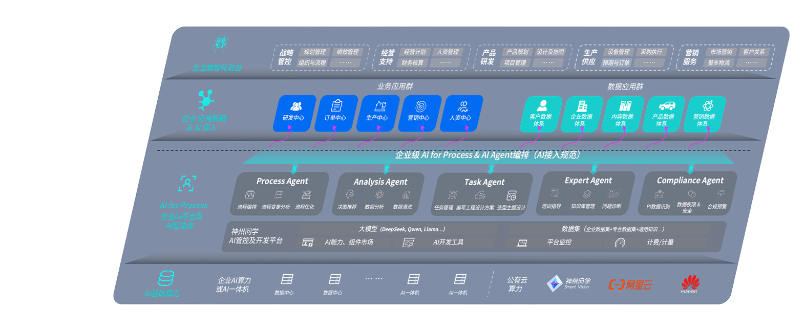 端到端的一站式AI工作空间深度融合了从企业战略规划到日常经营的全流程业务板块,,,,定向解决车企内部领域多、、、部门多、、、、链条长、、、、场景碎片化等难题,,,,支持车企快速构建以AI为核心的生产力写作体系,,实现任务执行与AI能力的无缝集成与交互
